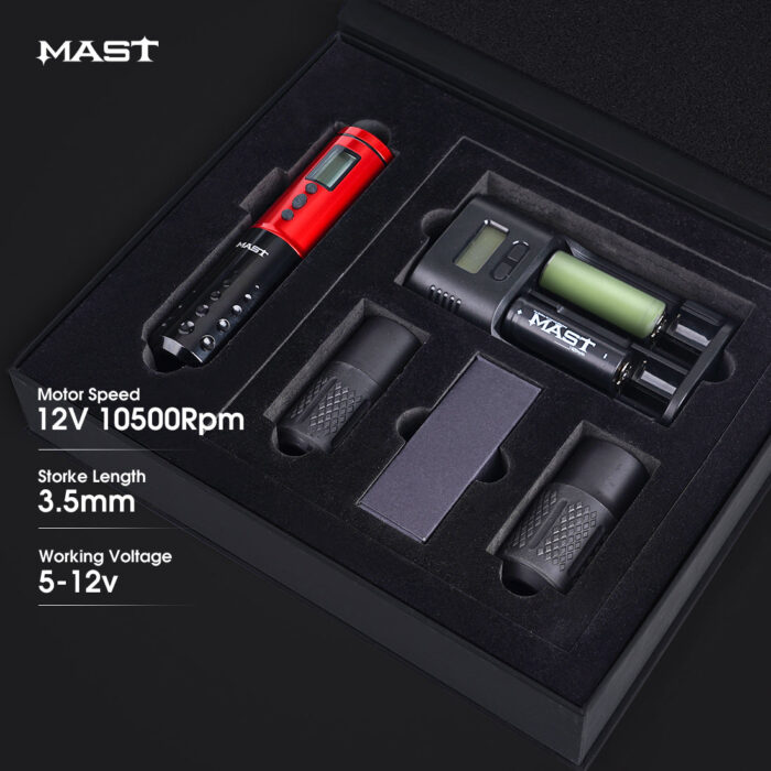 The Mast Tour Pro rotary tattoo pen machine is a durable machine with pen-like design, Flexible and lightweight for every style Gently and smoothly transfers ink to skin; suitable for all skin types. Effortless to cover and protect Efficient cartridge change and replacement. Compatible with power supplies and wireless power batteries with start-up function, direct drive working principle suit for all kinds of tattoos.